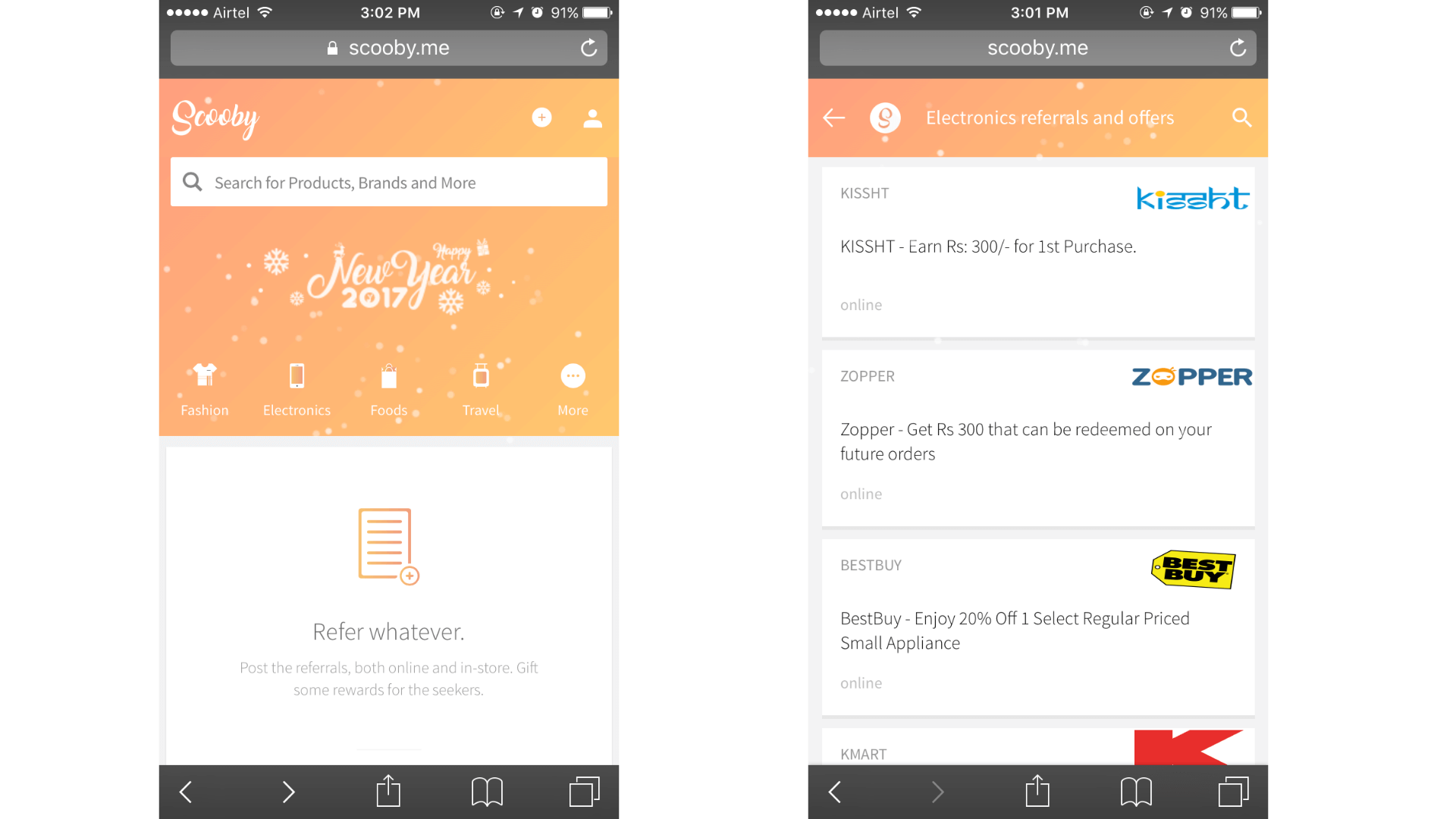Say for instance, #1 You buy a car and your vendor says refer a buddy to buy a car and get some $300, which we often miss out as not certain about the people in our circle. Scooby comes at this place, where you post the referral offer and share the benefits with those who use it and end up making new friends. Gone is the time where people used to check with friends for referrals. Scooby let's you make new friends through referrals.