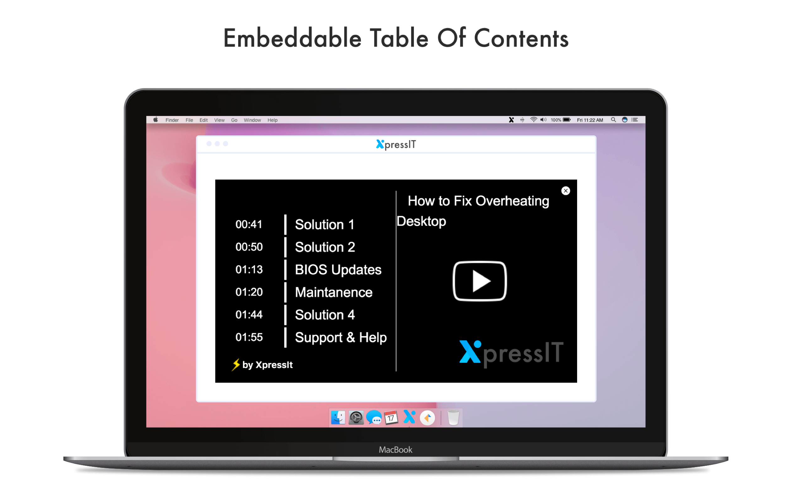Tech Behind - XpressIt is an cross platform desktop application built with Electron Js and MEAN stack for the web application to support it. I worked on building screen recording modules for Mac platform, Application UI to search and embed videos and backend APIs for suppoting the desltop application.